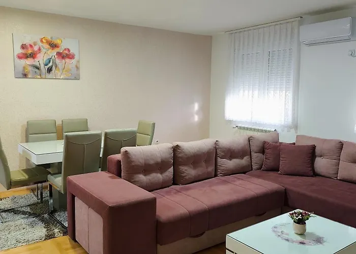 設備の整った台所では自分で食事を作ることができます。 Apartman Laraは、コンスタンティヌス大帝空港から80キロメートル離れたところにあります。